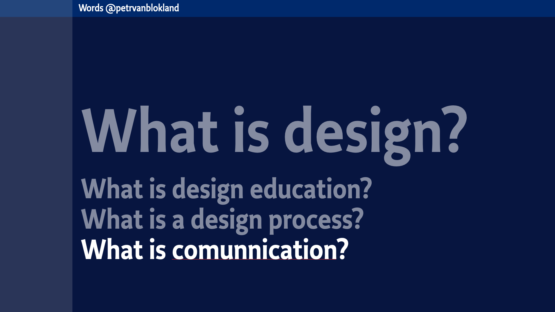 Van Blokland has taught graphic design, typography, and type design for over 40 years at the Royal Academy of Fine Arts (KABK) in The Hague and for many years at the Academy of Fine Arts, Arnhem and at the Bachelor and Master’s program in Graphic Design at AKV|St.Joost in Breda. His first typeface was Proforma, a then large series commissioned by Purup, a Danish manufacturer of form-preparation systems. In 1988, Van Blokland’s work brought him ATypI’s coveted Charles Peignot Prize.